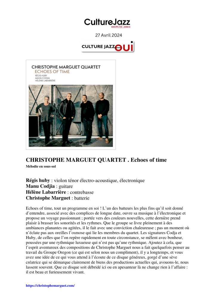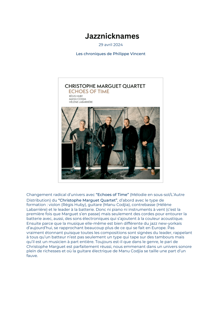 « Alors, oui, cher Christophe, continuez à faire des albums aussi bien pensés que celui-ci, le jazz du XXIème siècle a tout à y gagner. »