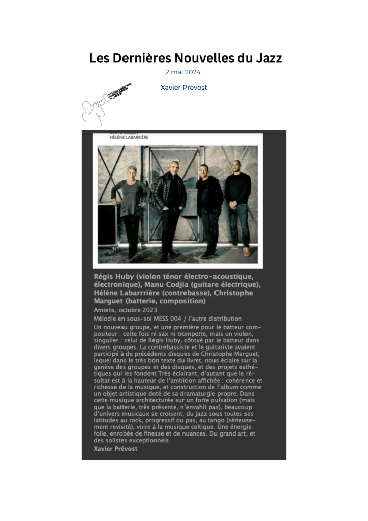 Xavier Prévost, Les dernières nouvelles du Jazz – mai 2024