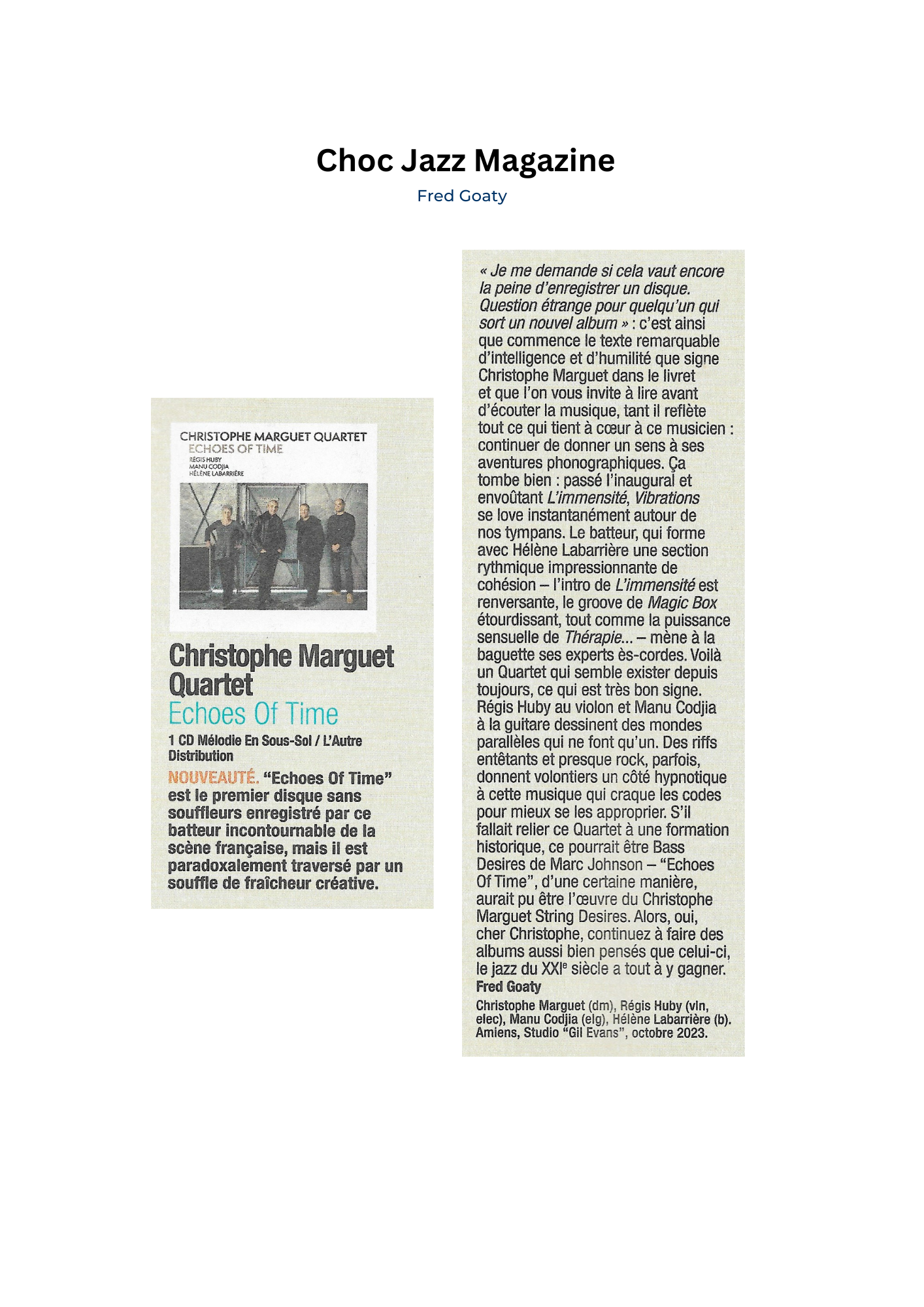 Fred Goaty, Jazz Magazine (Choc) – mai 2024