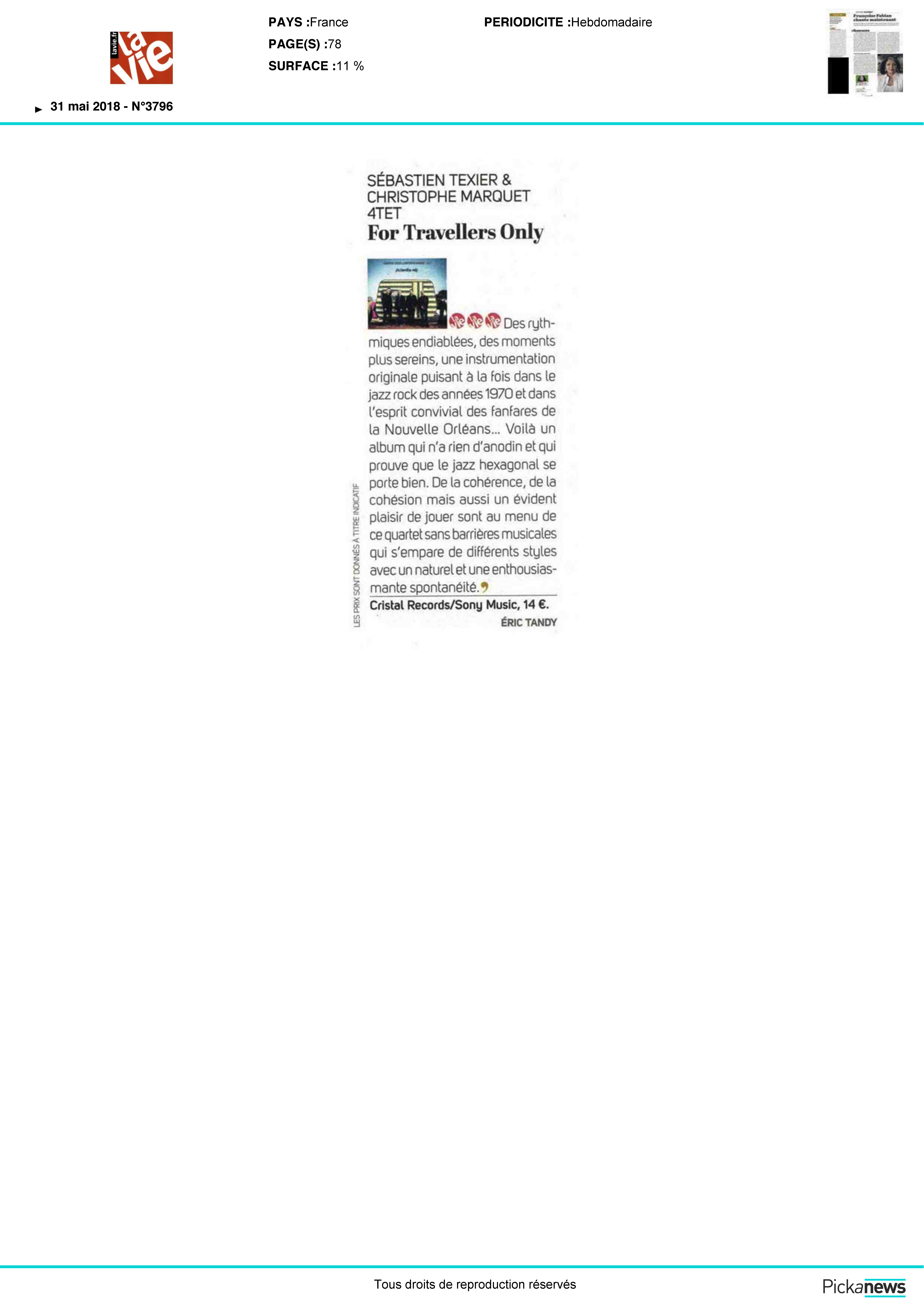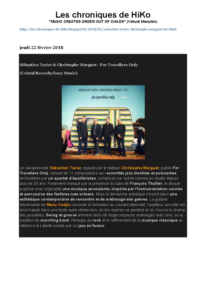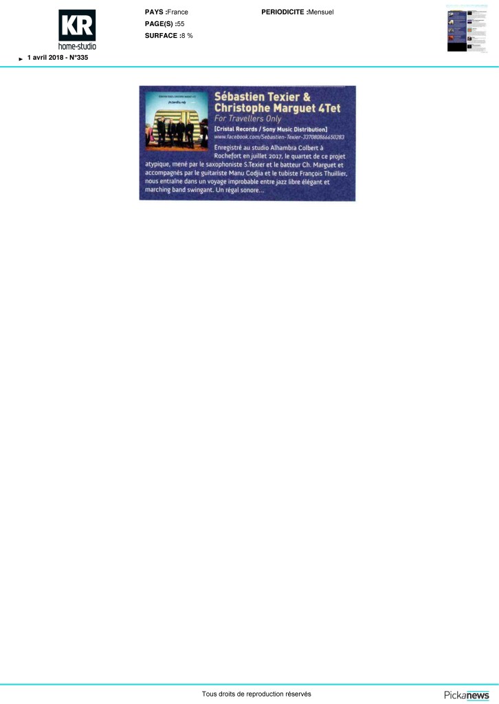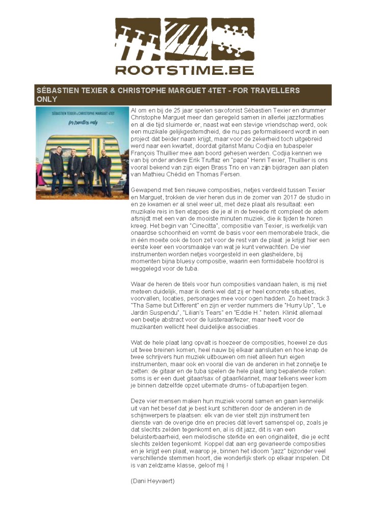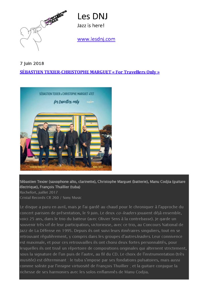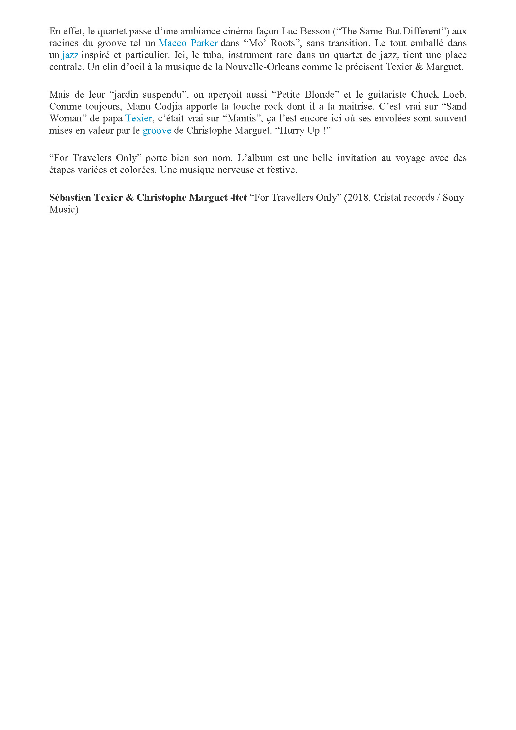 Sébastien Texier : Clarinettes, saxophone alto, compositions Manu Codjia : Guitare François Thuillier : Tuba Christophe Marguet : Batterie, compositions
