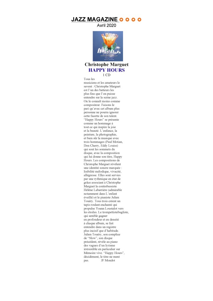 Christophe Marguet : Batterie, compositions