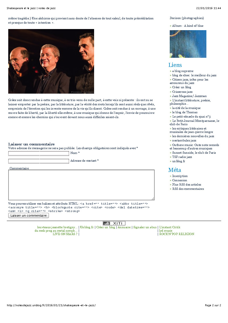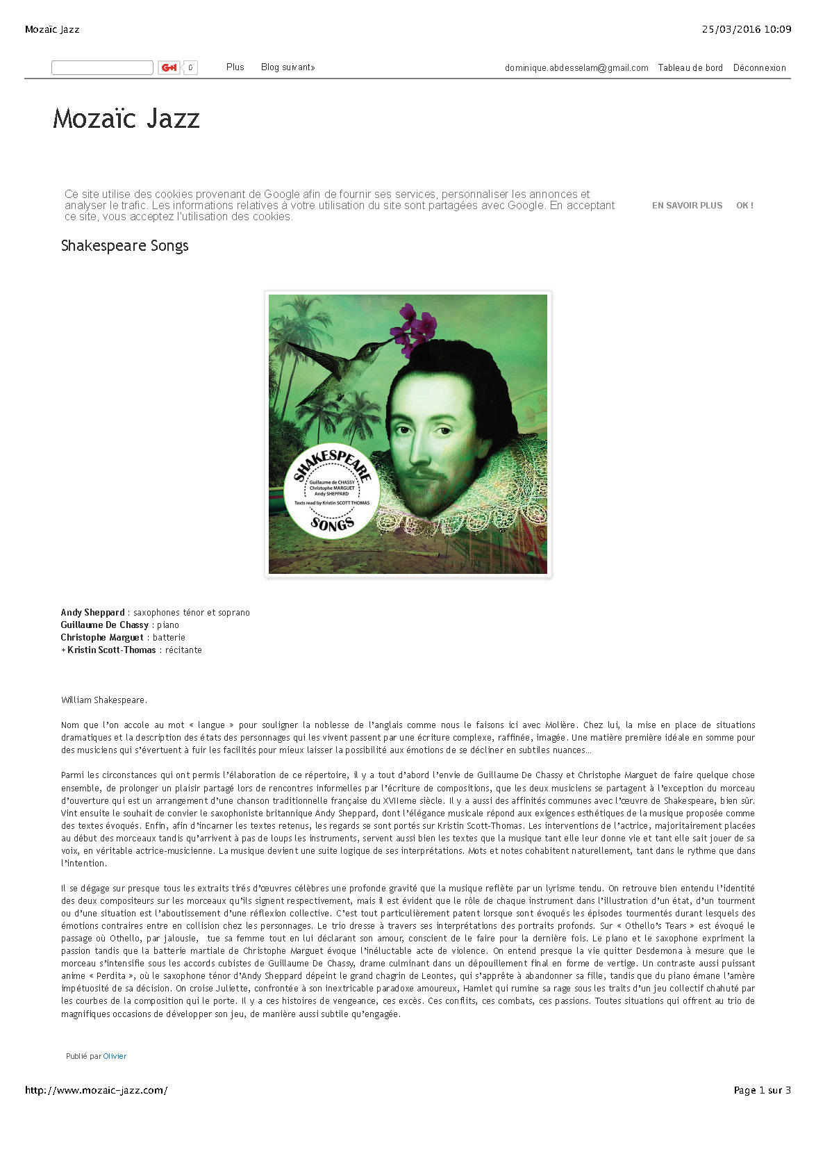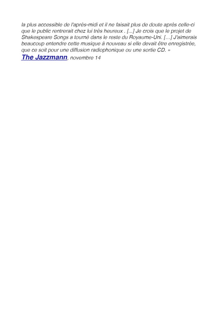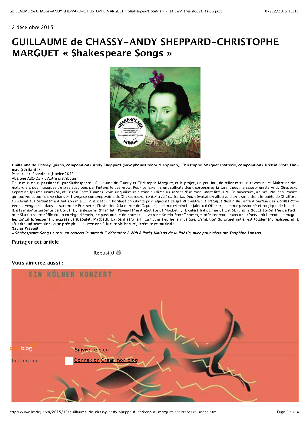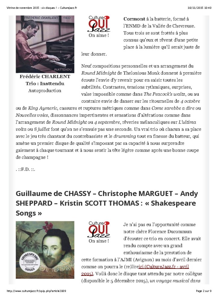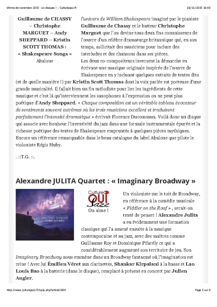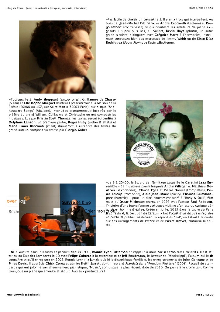 Andy Sheppard : Saxophones ténor, soprano Guillaume de Chassy : Piano, compositions Christophe Marguet : Batterie, compositions