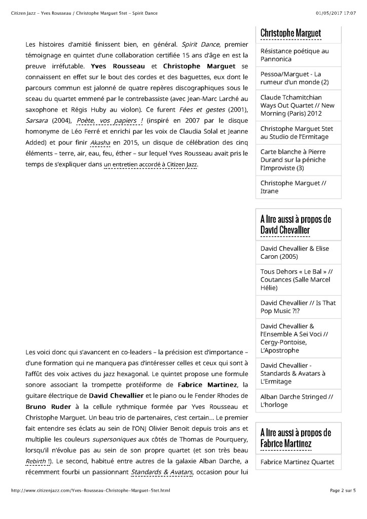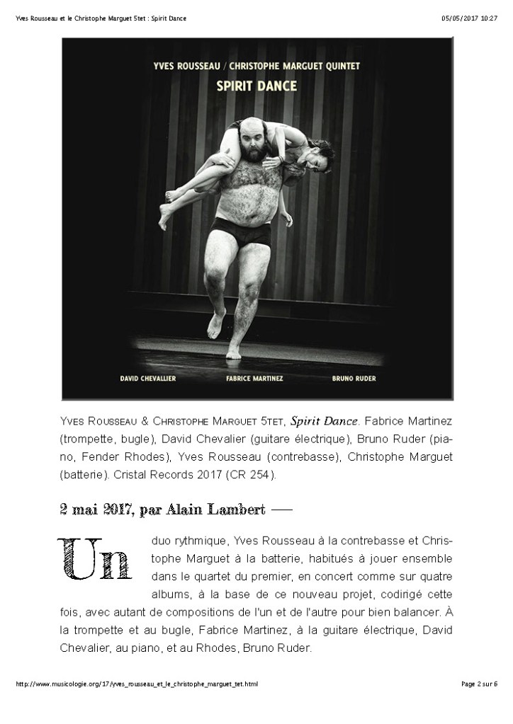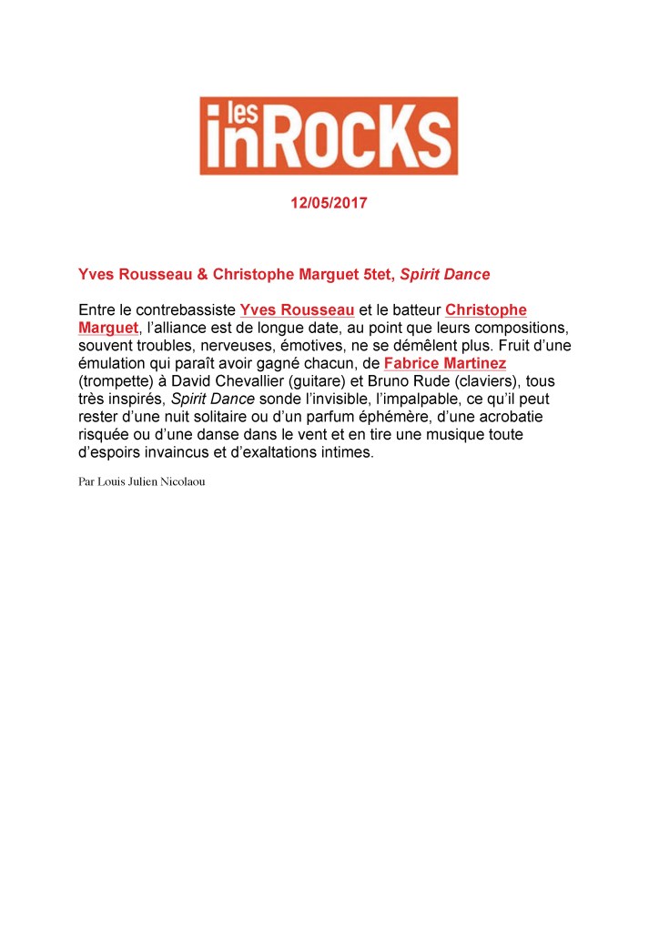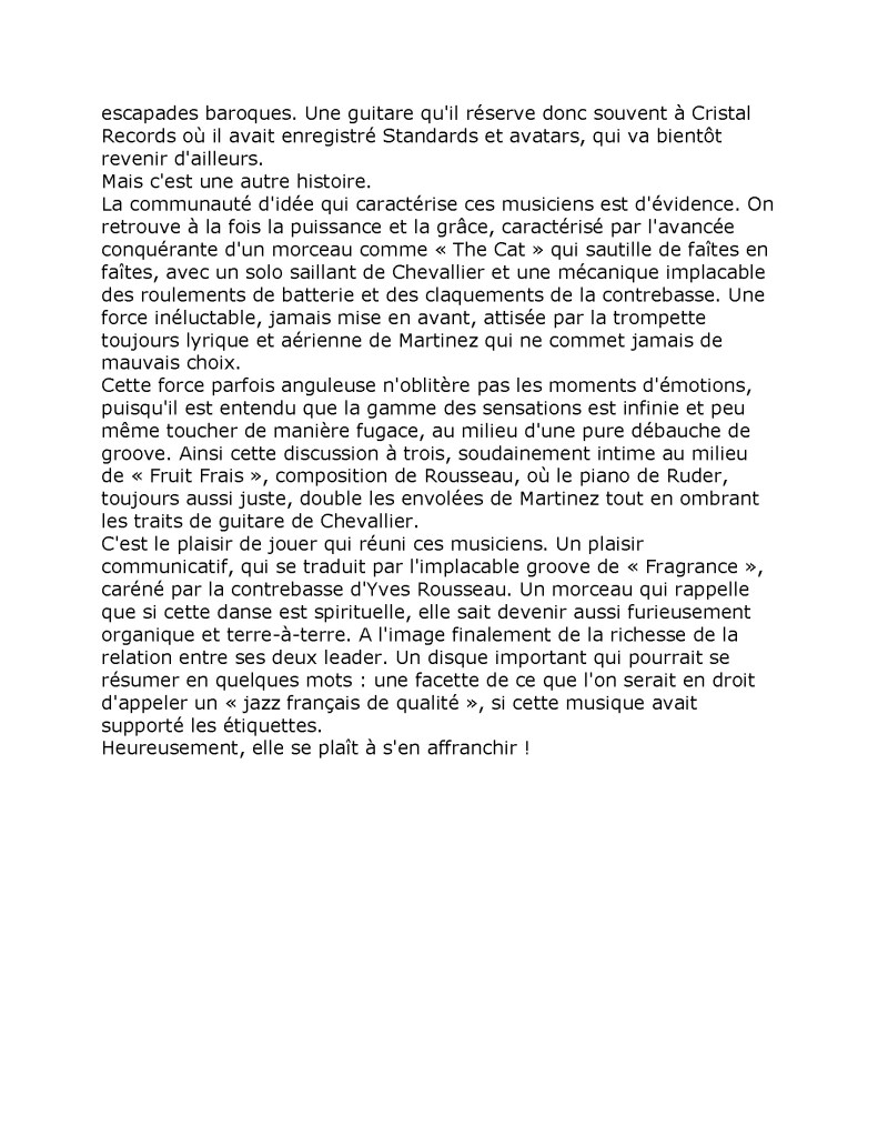 Fabrice Martinez : Trompette, bugle David Chevallier : Guitare Bruno Ruder : Piano Yves Rousseau : Contrebasse, compositions Christophe Marguet : Batterie, compositions