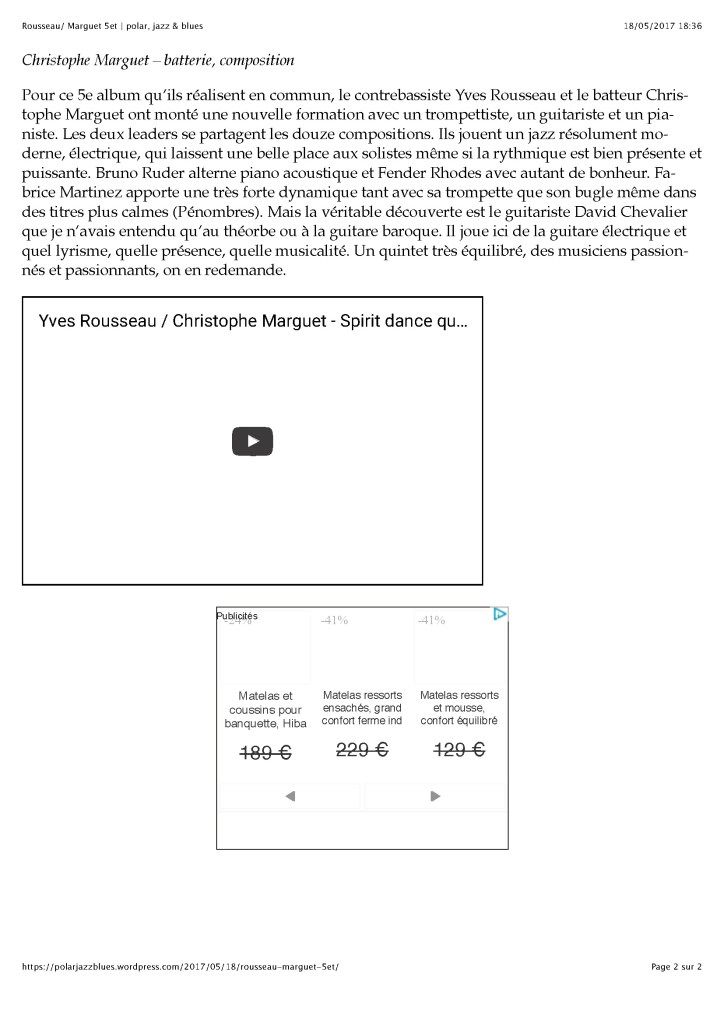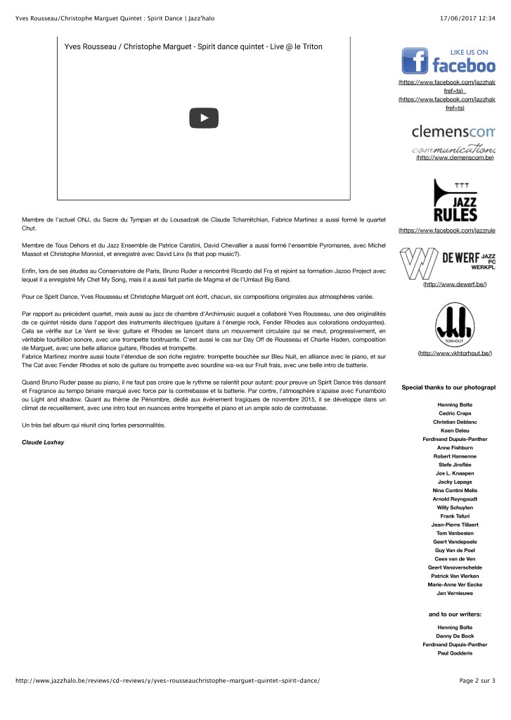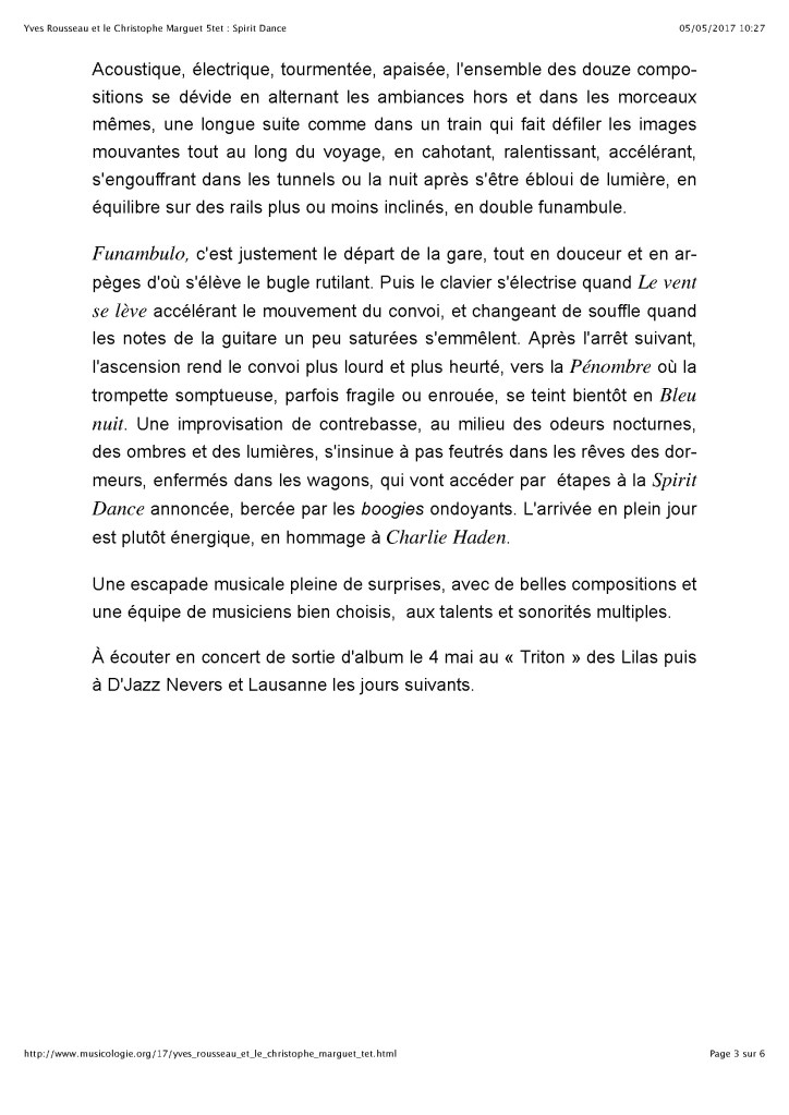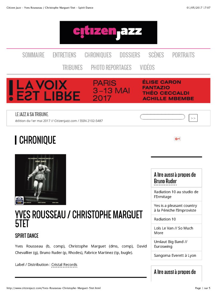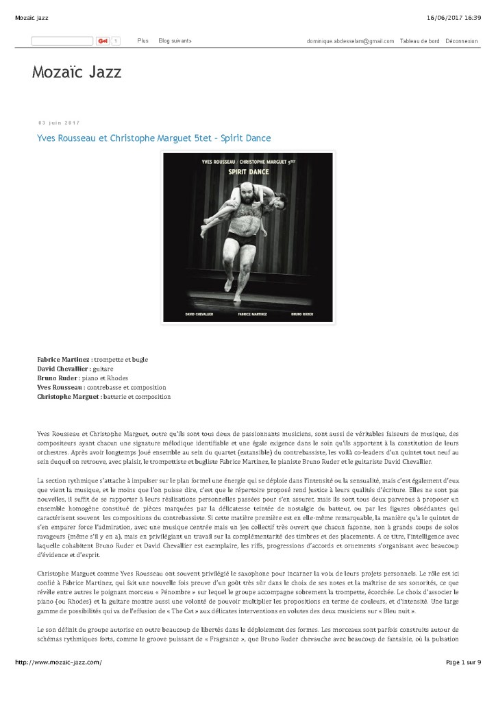 Fabrice Martinez : Trompette, bugle David Chevallier : Guitare Bruno Ruder : Piano Yves Rousseau : Contrebasse, compositions Christophe Marguet : Batterie, compositions